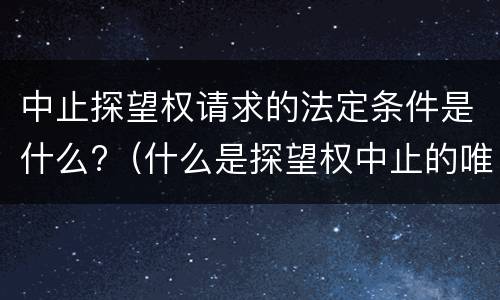 1、探视权人患有严重危害健康甚至是生命的传染性疾病,而该病可能通过和子女的一般性接触传染给子女的;